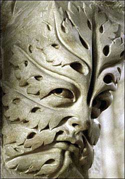 The image of the Green Man, a face, almost always male, associated with leaves, is an ancient symbol of our unity with Nature. This symbol is now understood in an explicit way that was never before possible. Its use in the past seems to have been entirely intuitive: no written account of the image has yet beef found from any culture. The idea of the Green Man is a modern perception of the identity between several cultural strands: the carved images in churches, temples and folk art, a group of early tree legends, the folk customs involving a figure clad in leaves, usually Spring regeneration customs, the concept of the "wild man", ancient survivors living in the forests, the Robin Hood stories, the Gawain and the Green Knight story, and the English inns that gave given their name to the whole group of cultural strands. These strands are not causally linked, and their association may be denied, but a common derivation in human psychology may, to some, be useful. EARLY MYTHOLOGY Most of the earliest cultures seem to have considered the causal force behind the world as feminine, a Goddess, a Great Mother, who in her concern for struggling humanity, although a virgin without consort, bears a son who is both human and divine, and who as a mortal must die, but in life is on Earth to help humanity with what it needs (but not what it wants!). In many of the legends, this son is connected with a tree. From this the Green Man seems to have been generated, the son of the Goddess here to help us. In England this is acted out in May folk customs in Hastings, Rochester and Castleton, but similar customs are found all over Europe. Independent customs of a similar nature have been reported in Africa. As a carved image, the Green Man is common in Europe, especially in Medieval churches, but has also been seen in Jain and Buddhist temples, Moslem structures and as folk carvings in traditional houses on the Pacific islands. Related images are to be seen in pre-Columbian temples in Mexico, and also in Mexican churches of later centuries. THE IMAGES Of course everywhere the majority of the images are probably conventional decoration, applied without profound symbolic intention, and this must have been the case among the thousands found in Medieval churches in Europe, from Ireland to Russia, from Norway to Italy, but particularly in France, England, and Germany. However, they are also found in close association with all the portrayal of all the central events of the Gospels, and these cannot be either accidental decoration or pagan survival. The image was accepted as valid by Christian philosophers and theologians, and observes the Gospel drama as the divine presence in nature, the image of God in nature, an angelic force in nature. Others in the churches are clearly there to guide our behaviour, and some of them are fierce in their insistence on our well disciplined conduct. These days we may see this not only as our personal conduct, but the conduct of the whole of our culture in its treatment of Nature and the world. THE INFLUENCE OF THE GREEN MAN The Green Man is our half-brother, a testing guide for us, a symbol of consciousness in the universe, and a reminder of its role and significance, and to some a sign of divine immanence in the world, the divine consciousness as an observer in the world. His influence is ecological, psychological and spiritual, a valid symbol for our time. |